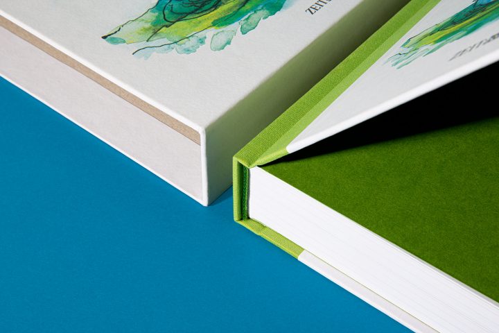 Wir hoffen, Herr Wondrak freut sich über diese Ausgabe genauso sehr wie wir. Denn dieser wundervolle Band wurde liebevoll mit SURBALIN glatt diamantweiß für Schuber und Bucheinband und SURBALIN glatt grasgrün für den Vorsatz ausgestattet. Um den Rücken des Buches schmiegt sich Ton-in-Ton zum Vorsatz BARONESSE Gewebe in grasgrün. Wir wünschen Herrn Wondrak weiterhin alles Gute und hören nicht auf daran zu glauben, dass es ihm gelingt, die Welt zu retten.