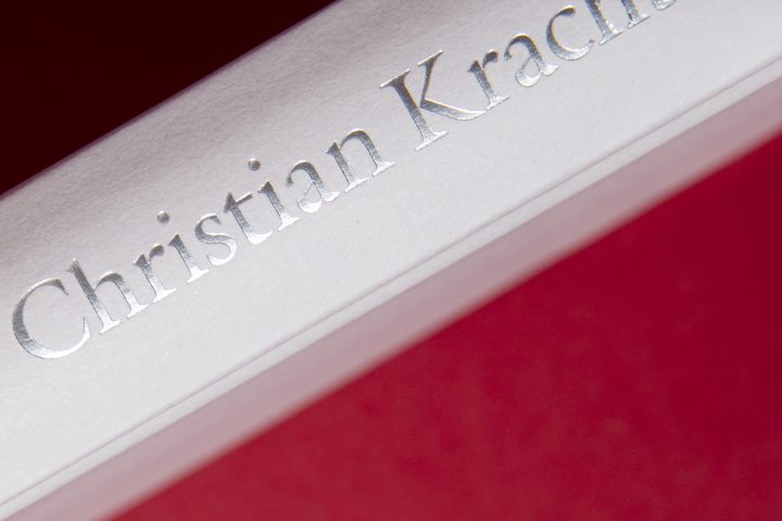 Bei Kiepenheuer & Witsch verlegt, sorgt Christian Kracht mit seinem neusten Roman einmal mehr literarisch für Furore. Der Schutzumschlag aus SURBALIN diamantweiß, bedruckt mit einem (Selbst?-) Porträt nimmt gestalterisch die Farben von Überzug- und Vorsatzpapier auf. Dramatisches rubinrot und beruhigendes kalkgrau spielen mit strahlendem diamantweiß.