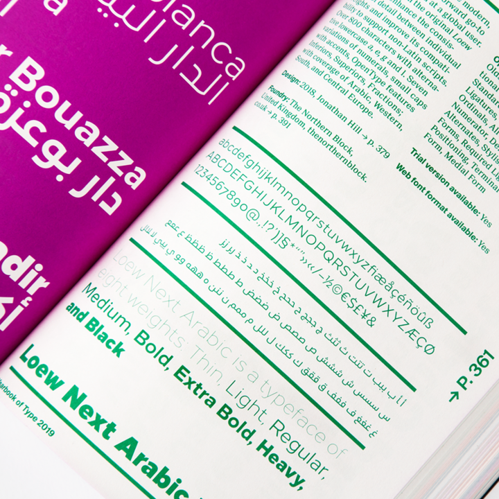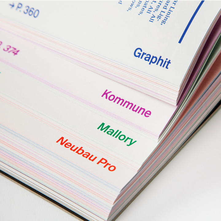 Das schwarze SURBALIN verbindet die Buchdecke mit dem seitenstarken Buchblock. SURBALIN schwarz ist ein durchgefärbtes Papier. Es gibt gerade als Vorsatzpapier dem Buch die nötige Stabilität und ermöglicht ein optimales Aufschlagverhalten. Das Yearbook of Type 2019/20 ist ein praktischer Leitfaden, der Anwendern helfen kann, durch die vielfältige, ozeanisch anmutende typografische Landschaft zu navigieren, um eine Schriftart auszusuchen, die ihren Projektanforderungen entspricht.
