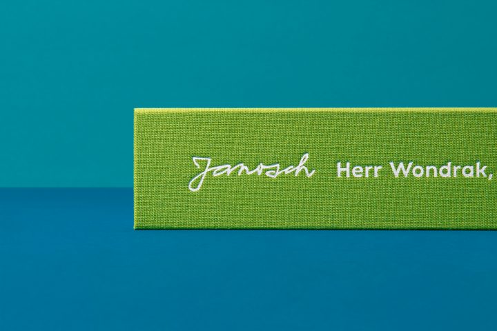 Wir hoffen, Herr Wondrak freut sich über diese Ausgabe genauso sehr wie wir. Denn dieser wundervolle Band wurde liebevoll mit SURBALIN glatt diamantweiß für Schuber und Bucheinband und SURBALIN glatt grasgrün für den Vorsatz ausgestattet. Um den Rücken des Buches schmiegt sich Ton-in-Ton zum Vorsatz BARONESSE Gewebe in grasgrün. Wir wünschen Herrn Wondrak weiterhin alles Gute und hören nicht auf daran zu glauben, dass es ihm gelingt, die Welt zu retten.