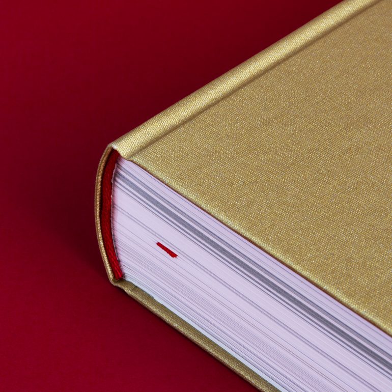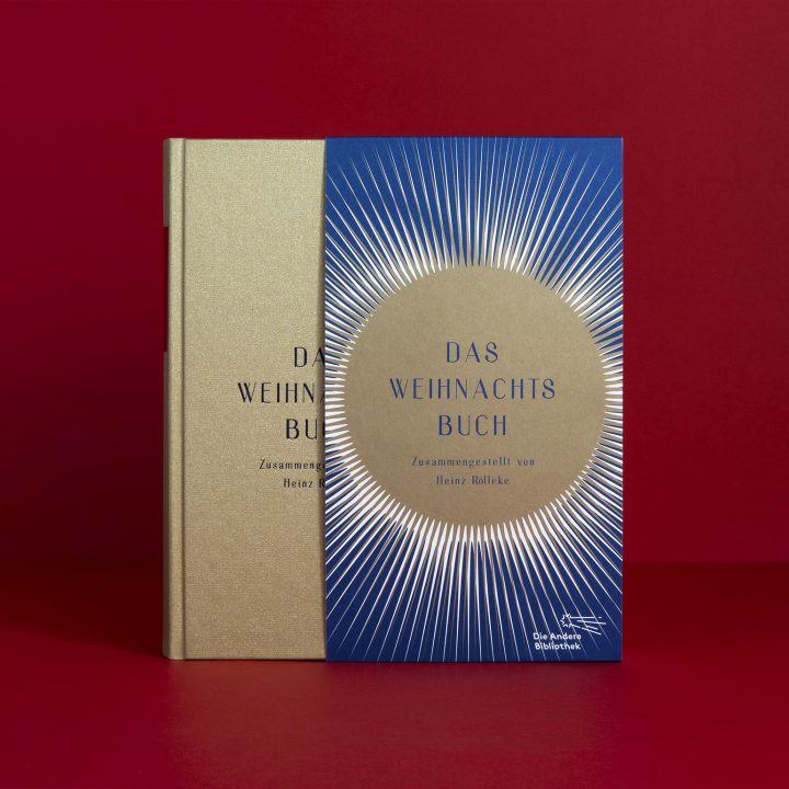 Der vor Kurzem verstorbene großartige Hans Magnus Enzensberger hat mit "Die Andere Bibliothek" eine Reihe herausgebracht, die die Herzen aller Buchliebhaber höher schlagen lässt. Jeden Monat eine Ausgabe, limitiert auf 3.333 Exemplare. Das Weihnachtsbuch vom Dezember letzten Jahres wurde vom Designbüro Lübbeke Naumann Thoben gestaltet. Feinstes, funkelndes Gewebe in Seidenoptik ist gerade gut genug und so schmückt das goldfarbene COMTESSE metallic den prachtvollen Band.