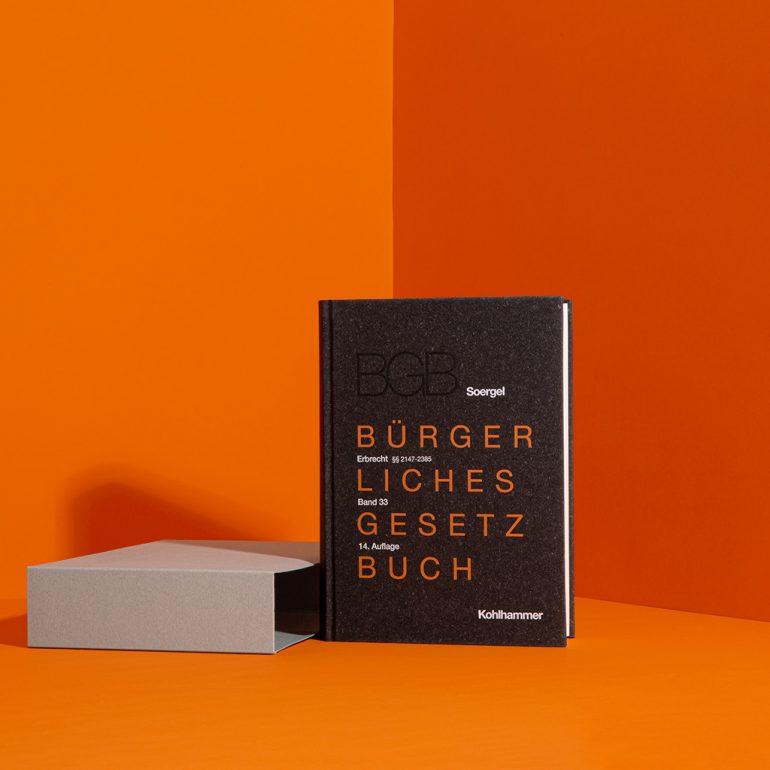 Legal texts can look that fashionably. The publisher Kohlhammer Verlag is providing the commented BGB series from Soergel with CABRA Natur kid. For the restrained, factual and very modern design of the cover a coloured hot stamping foil is used.