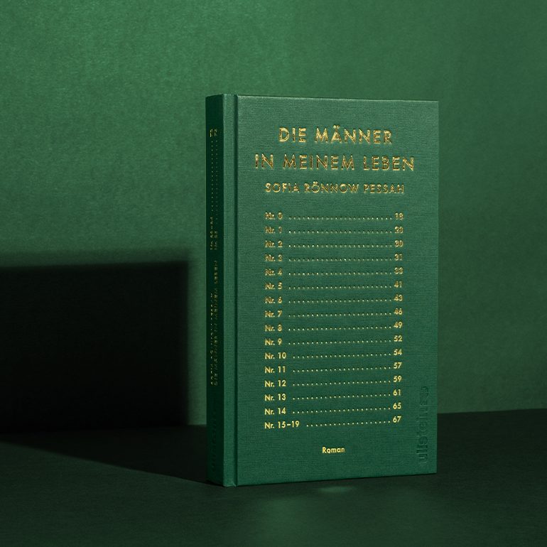 Creatively speaking, dark green and gold are obviously a clear contrast to the progressive content of the novel. By this, text, optics and haptics gain meaning and relevance. A successful triad of material, creation and elaboration, published by Ullstein.