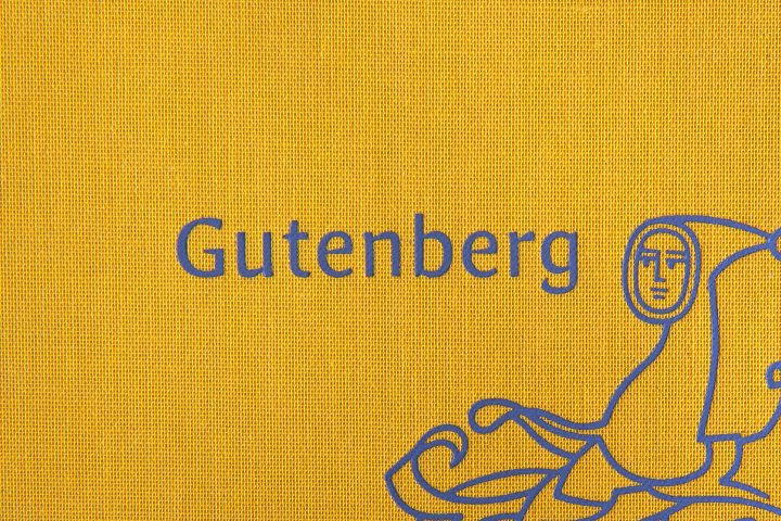 Each year the Gutenberg Gesellschaft publishes a perfectly designed volume all about Johannes Gutenberg. Every two years a new type face is presented as a reference to the 21st century. This year it is the sans serif type Comma Base by Martin Majoor. The book jacket of PEYPRINT glatt satiniert is printed two-coloured in offset. The warm yellow - on the book jacket and on the printed end paper it is Pantone 122- can be found once again in the cover material. BARONESSE papaya fits perfectly and it completes the design.